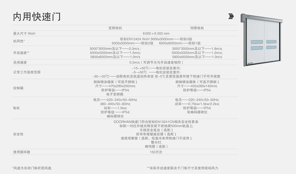 快速門220伏電控系統(tǒng)采用雙編碼器伺服電機,具有扭矩可調(diào)、調(diào)試簡便的特點,并配有多功能LCD屏幕顯示控制箱。