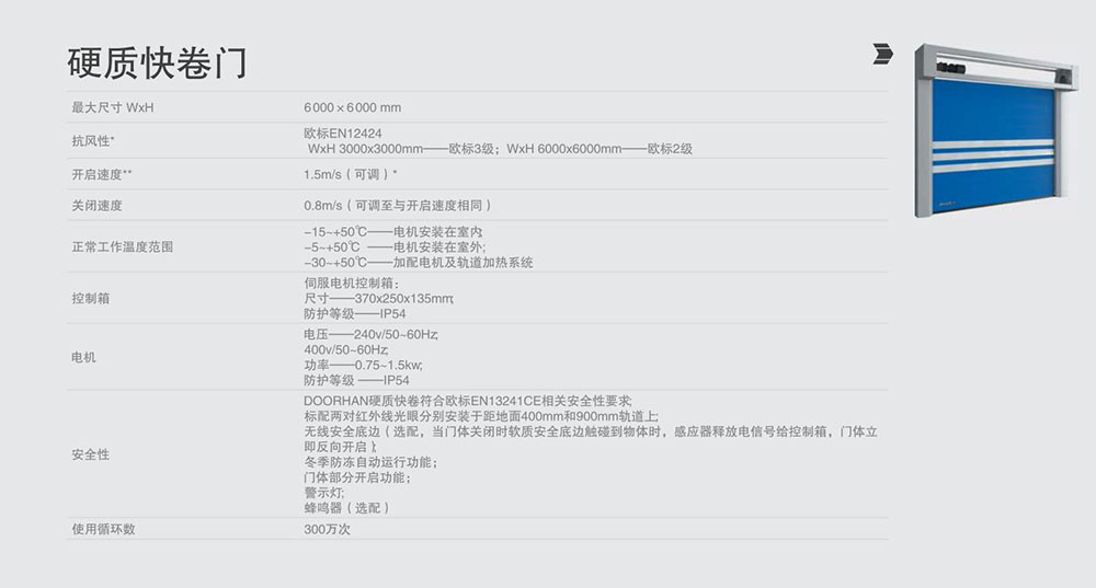 應(yīng)用:廣泛應(yīng)用于工業(yè)、倉(cāng)儲(chǔ)和商業(yè)建筑室內(nèi)及室外用門;具有最佳的抗風(fēng)性能;結(jié)合了工業(yè)滑升門及PVC快速門的優(yōu)點(diǎn)。