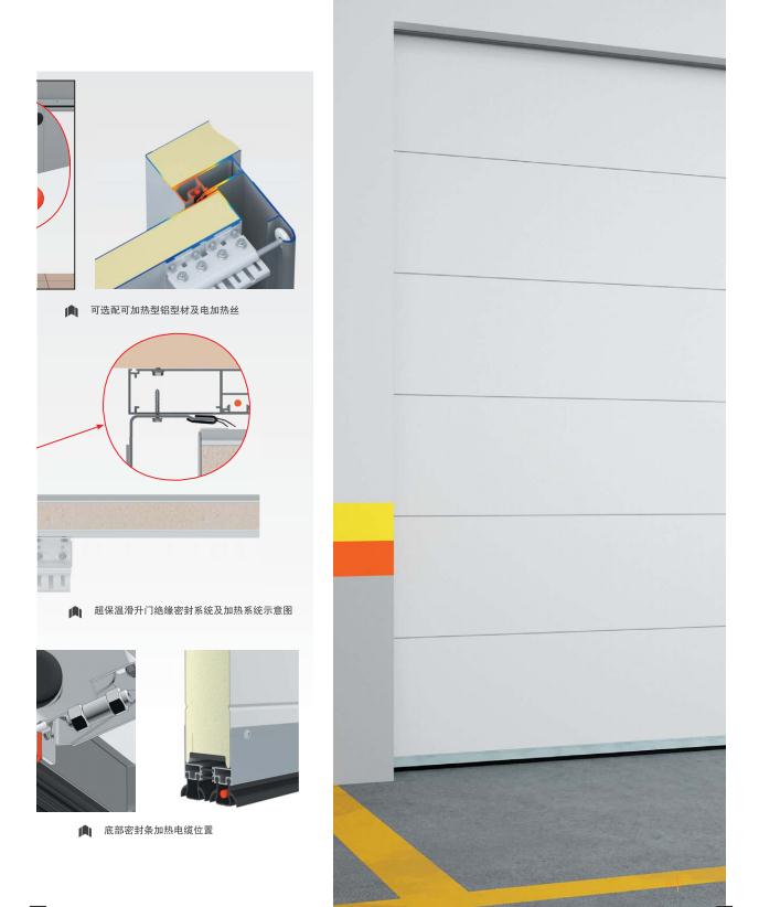 優(yōu)勢(shì)∶80mm厚鋼制保溫門板、斷橋設(shè)計(jì)頂部及底部型材、可加熱鋁型材設(shè)計(jì)及電熱絲(選配)