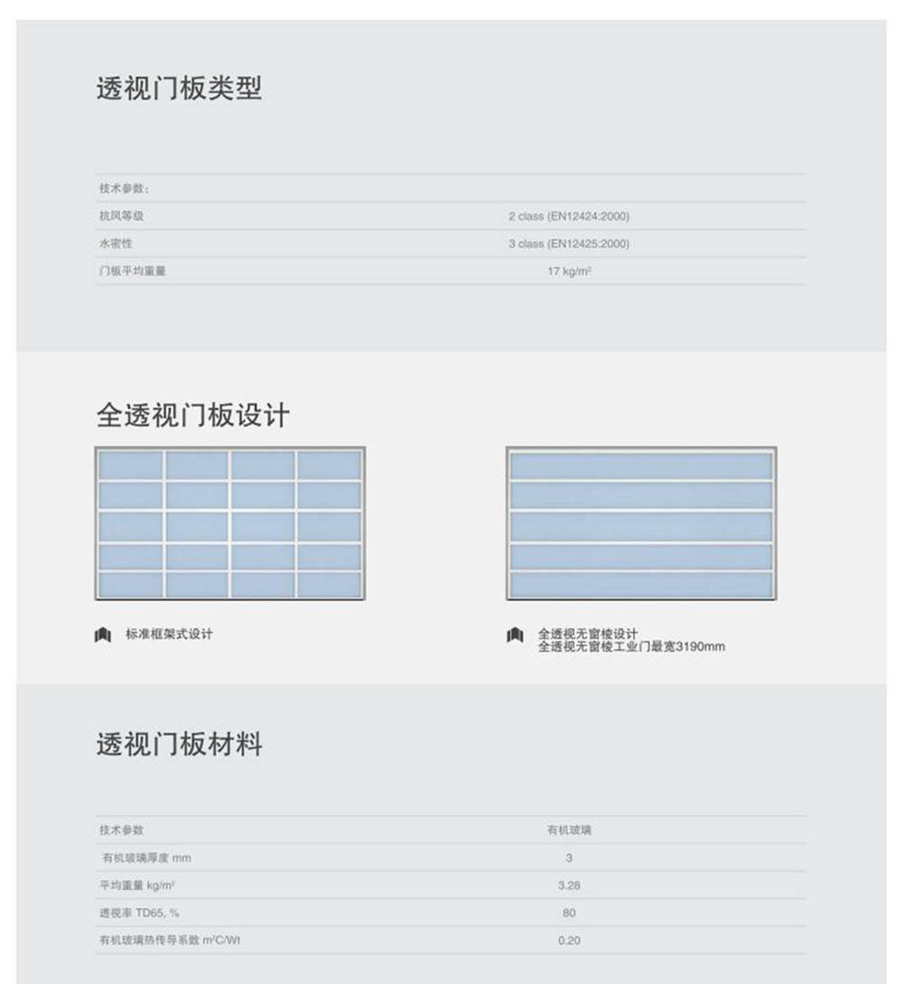 優(yōu)勢∶最大化室內(nèi)外采光度;結(jié)構時尚;耐腐蝕;可和發(fā)泡門板配合使用形成強度和保溫性能更高的組合門板。